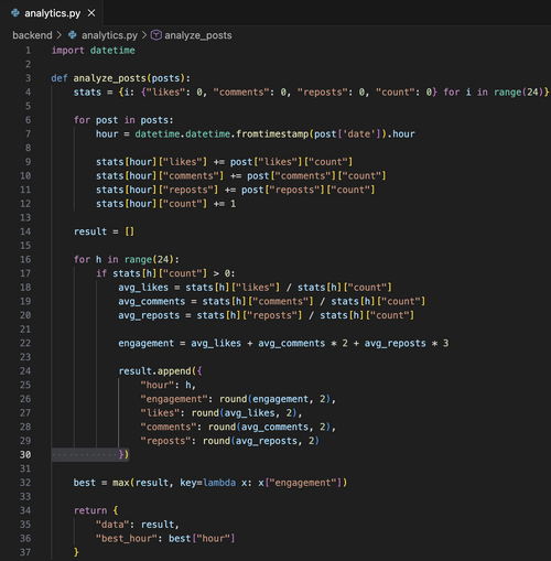 • Определение «золотого часа» публикаций в VK для максимальной вовлеченности.