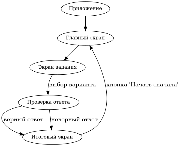 Диаграмма работы приложения "Викторина "Блиц-Мозг""