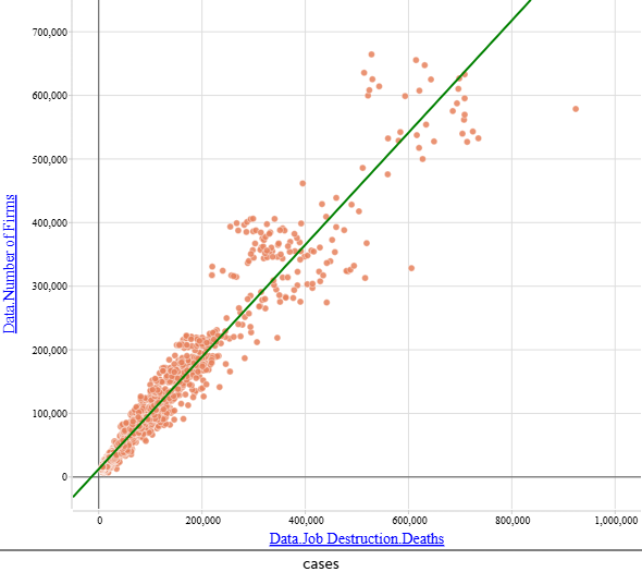 LSRL: Salaries.Median = 0,7259 (Salaries.Mean) + 4172 N = 517, ρ = 0,9169, r2 = 0,8407