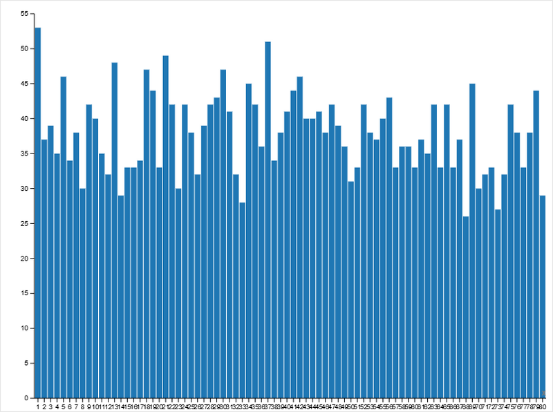 Для эксперимента были собраны данные с помощью Netlogo, они были экспортированы в CSV-таблицу, с помощью которой были созданы графики через веб-инструмент визуализации данных RAWGraphs в формате Bar Chart Эксперимент направлен на анализ того, насколько коллективное усреднение снижает хаотичность индивидуального случайного поведения.