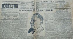 - АВП РФ. Ф. 059. Оп. 1. П. 168. Д. 1273. Л. 61. Шифртелеграмма наркома по иностранным делам СССР М. М. Литвинова в НКИД СССР о предстоящем голосовании в Совете Лиги наций по вопросу о вступлении в Лигу СССР. 15 сентября 1934 г.