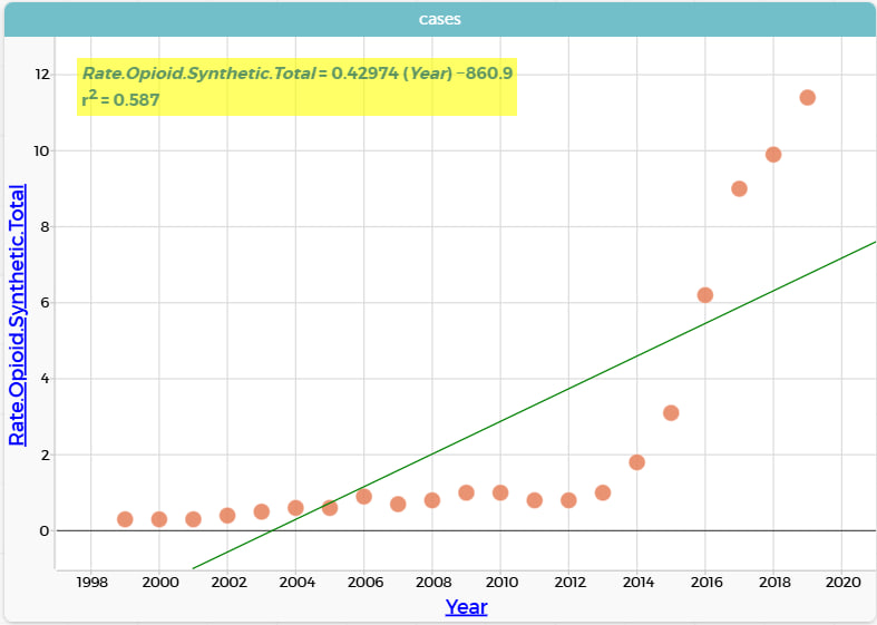 Регрессионный анализ зависимости года от синтетических опиоидов
