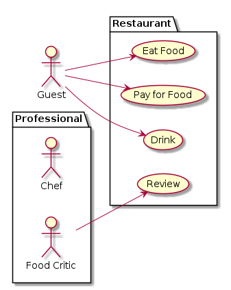 - актёр (англ. actor) — стилизованный человечек, обозначающий набор ролей пользователя (понимается в широком смысле: человек, внешняя сущность, класс, другая система), взаимодействующий с некоторой сущностью (системой, подсистемой, классом). Актёры не могут быть связаны друг с другом (за исключением отношений обобщения/наследования),