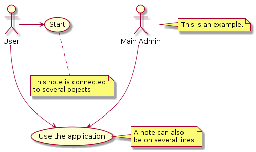 - прецедент — эллипс с надписью, обозначающий выполняемые системой действия (могут включать возможные варианты), приводящие к наблюдаемым актёрами результатам. Надпись может быть именем или описанием (с точки зрения актора) того, «что» делает система (а не «как»). Имя прецедента связано с непрерывным (атомарным) сценарием — конкретной последовательностью действий, иллюстрирующей поведение. В ходе сценария акторы обмениваются с системой сообщениями. Сценарий может быть приведён на диаграмме прецедентов в виде UML-комментария. С одним прецедентом может быть связано несколько различных сценариев.
