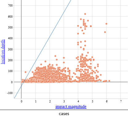 Гипотеза: Возможно, существует зависимость между глубиной эпицентра землетрясения и его магнитудой: чем глубже происходит сейсмическое событие, тем выше его магнитуда (или наоборот). | |||