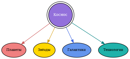 "Космос" [shape="doublecircle", fillcolor="mediumpurple", fontcolor="white", fontsize=9]; | |||