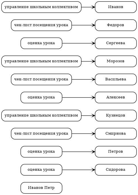 Федоров Олег -> Иванов Петр [label="оценка урока"];