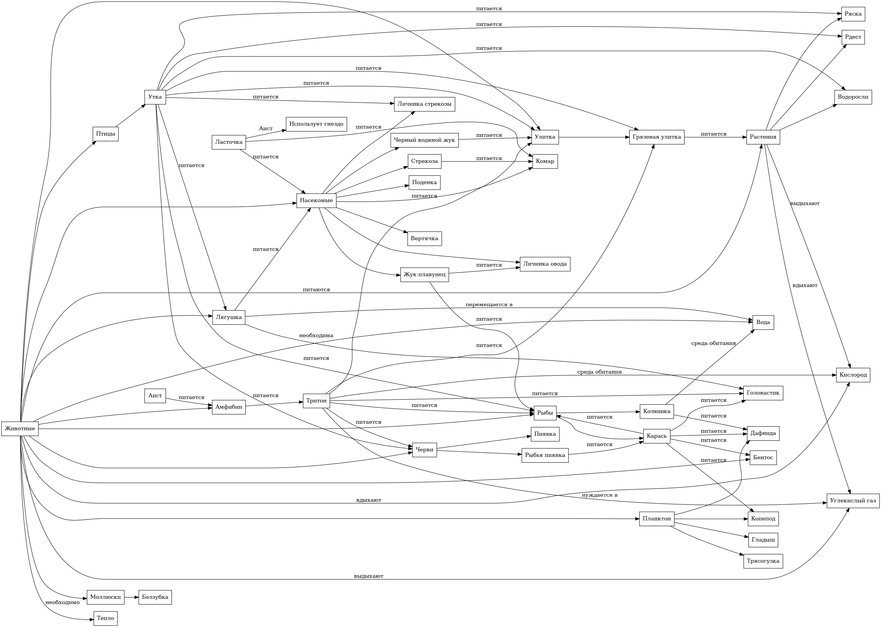 "Утка" -> "Водоросли" [label="питается"] | |||