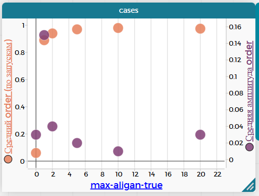 - Упорядоченность (order) — насколько синхронно движутся все агенты (0 = хаос, 1 = полная согласованность);