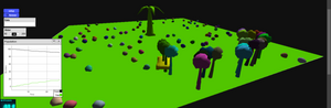 Описание модели В большом городском парке работает умный робот-эколог. Его задача — сделать парк чище и красивее. По территории разбросан мусор, который оставили невнимательные посетители. Робот ездит по парку, находит мусор и убирает его. На каждом месте, где был мусор, робот высаживает два молодых дерева. Со временем парк становится всё более цветущим и приятным для прогулок.